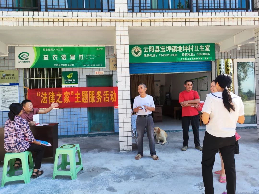 “劉叔叔,今天村辦公室這里在開展‘法律之家’主題服務活動,宣傳法律法規,有律師提供服務,你上次說的問題可以去咨詢一下他們。”寶坪鎮地坪村村支書看到村民劉大爺從村辦公室經過,急忙招呼他來找律師咨詢。