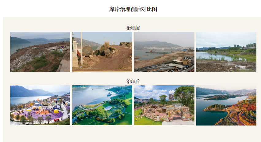 從2014年開始,云陽將庫岸治理、生態修復和城市品質提升有機結合,圍繞“騎走跑坐可享、山水花石可賞、文史科藝可品”的建設策略,規劃實施云陽縣城沿江庫岸環境綜合整治。歷時7年精心雕琢,修復沿江庫岸14處,治理河堤33公里、護坡77萬平方米,綠化面積330公頃,過去的庫岸“傷疤”,蛻變成城市綠脈。自行車道、漫步道、跑步道串聯8個主題公園,內嵌各類場館12個、體育場地46.81萬平方米、休閑廣場117公頃。通過庫岸環境綜合整治,云陽城市安全韌性不斷提升,城市功能品質進一步完善,城市風貌煥然一新,實現市民“一天的公園、一年的公園、一生的公園”美好愿景。