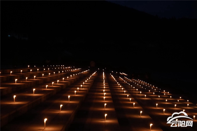 夜幕降臨后,村民們全家齊出動,在門前屋后擺放蠟燭。當一排排蠟燭被依次點亮,整個村子被千萬盞燭火圍繞,猶如燦爛星河。在長灘河畔,千余根蠟燭在夜色中隨風搖曳,用蠟燭點亮的堰坪鎮logo在夜色中格外耀眼。“我們每年都點燈祈福,希望家人身體健康,平平安安。”村民雷恩珍說道。