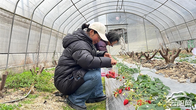 云陽網訊(記者 陳慧 李妍)眼下正值大棚草莓采摘期,泥溪鎮最星鮮草莓園內,一壟壟翠綠茂盛的草莓苗長勢喜人,白色小花點綴其間,紅彤彤的果實墜掛在葉蔓上,色澤誘人,吸引不少市民前來體驗采摘樂趣。