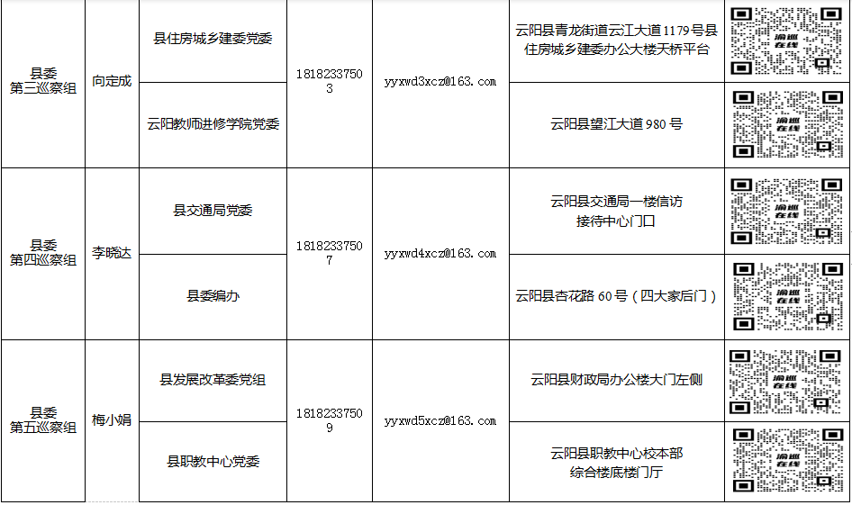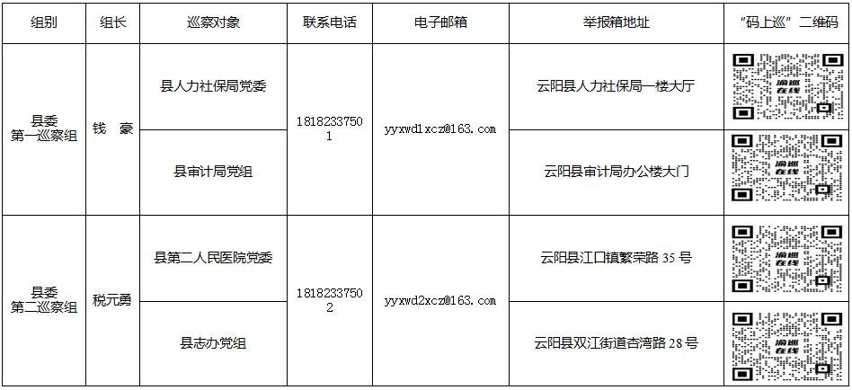 十五屆縣委第六輪巡察各巡察組巡察對象及聯(lián)系方式