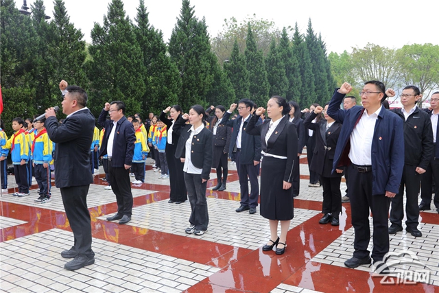 在莊嚴(yán)肅穆的紀(jì)念碑前,全體黨員、少先隊(duì)員重溫入黨、入隊(duì)誓詞。少先隊(duì)員代表講述革命英雄故事《銘記紅巖魂》,接著全體人員向革命烈士鞠躬默哀,敬獻(xiàn)花籃、瞻仰紀(jì)念碑、寄托心中的哀思。最后,全體師生齊唱《沒(méi)有共產(chǎn)黨就沒(méi)有新中國(guó)》。