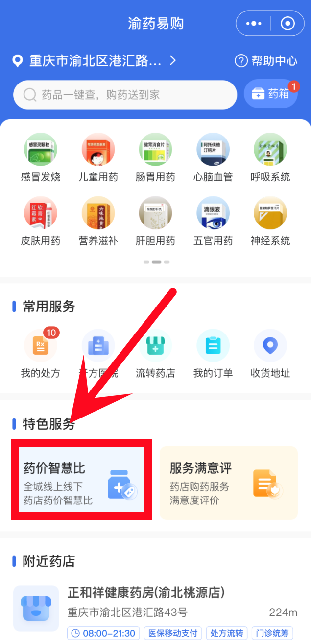 在“就醫購藥”欄目選擇“渝藥易購”服務。
