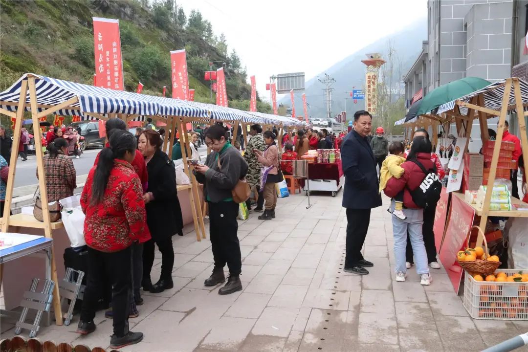當地村民紛紛將自家的紅橙、手工面條、臘肉等