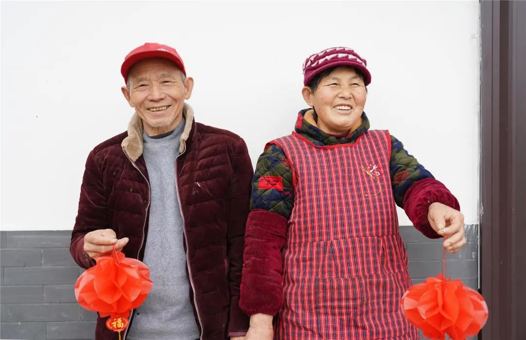 只見老人們手拿燈籠、看著鏡頭笑得開懷