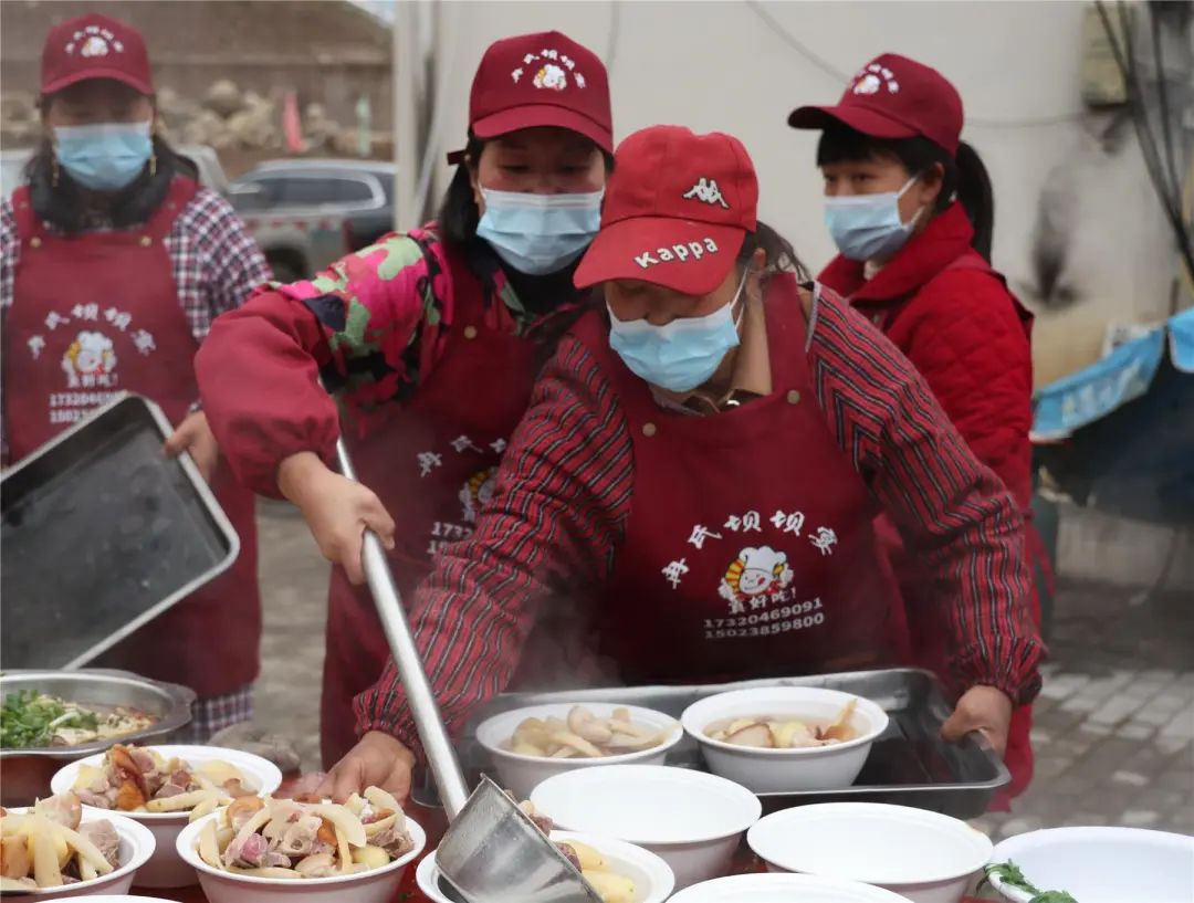 廚師們將豬腳、扣肉等菜肴端上餐桌