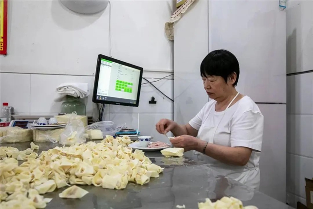 “老板,兩個大碗,一清一紅!”“紅湯,多放點辣椒!”早上7點半,云江大道旁的董老四包面店迎來早高峰。今年70歲的向有萍坐在餐臺前,雙手翻飛如蝶,幾秒鐘便捏出一個“元寶”狀的包面。她的兒子董俊成則在廚房里忙活,包面下鍋,面皮透出粉色的肉餡時迅速撈出,淋上紅亮的油辣子,香氣瞬間盈滿小店。