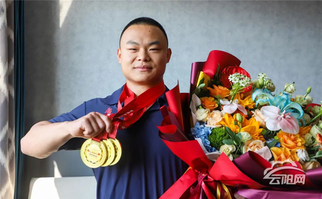 云陽網(wǎng)訊(記者 譚啟云 唐彬)今年7月,安徽滁州。在全國U系列舉重冠軍賽的舉重臺上,18歲的丁彬深吸一口氣,發(fā)力,提拉,上挺!杠鈴穩(wěn)穩(wěn)舉過頭頂。當(dāng)電子屏亮起三盞白燈時,他攥緊拳頭猛捶胸膛,汗水混著淚水砸落在臺上——180公斤!最終他以抓舉140公斤、挺舉180公斤、總成績320公斤的絕對優(yōu)勢,斬獲三金。而就在兩個月前的全國青年錦標(biāo)賽上,他更是舉起了打破個人極限的182公斤,一舉奪得挺舉項(xiàng)目冠軍。