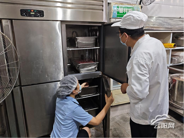 檢查期間,執法人員嚴格核查各學校食堂從業人員健康管理制度、員工培訓制度及健康證明公示落實情況,詳細查閱米、面、油、肉等食品原料的進貨渠道、索證索票和進貨查驗記錄,對餐具清洗消毒記錄進行逐項檢查。同時,執法人員到后廚操作間,全面檢查環境衛生、員工個人衛生、冷藏冷凍設備運行狀況、半成品儲存規范情況,以及廚房、庫房“三防措施”配置狀況,重點核查食品原料是否分區分類、離地離墻存放,食品留樣是否落實專人專柜專管等制度。