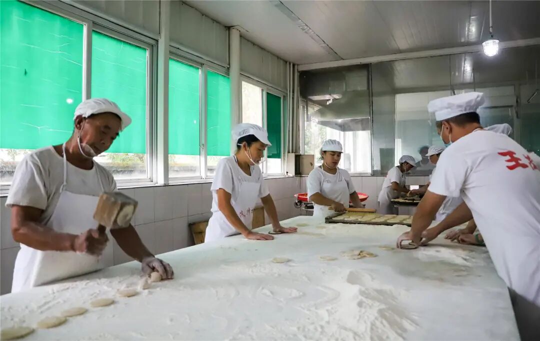 “用力過猛就成癟歪歪,力道不夠撐不開餅圈。”今年57歲的廠長李明一邊盯著徒弟上麻的手法,一邊順手抄起木槌示范。