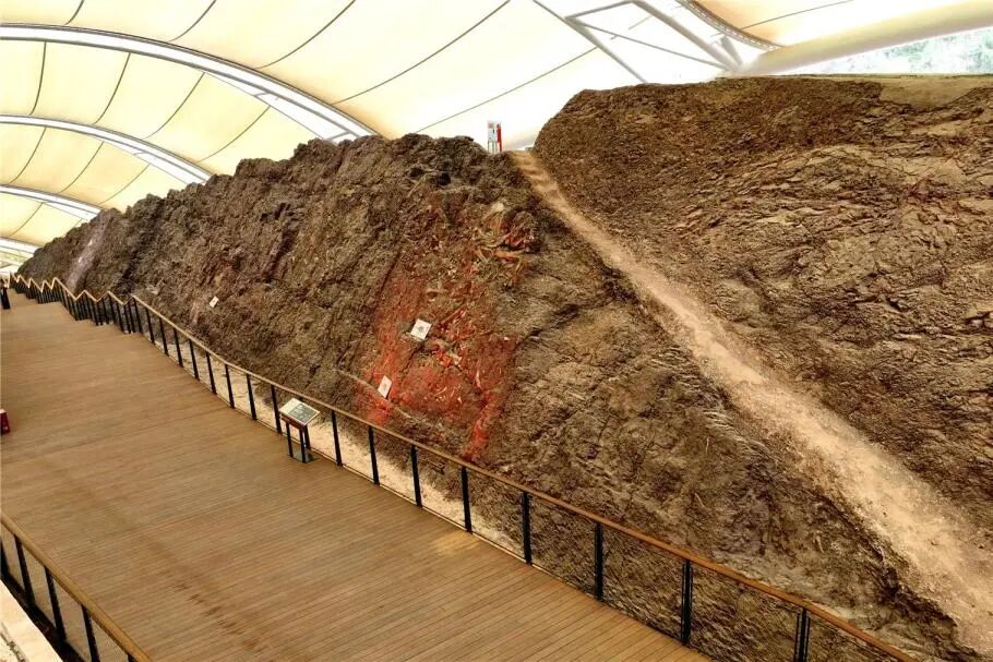 想觸摸侏羅紀的脈搏?云陽恐龍化石遺址館里有世界上單體最大的侏羅紀恐龍化石,墻長150米、高6米~10米,墻體上鑲嵌著5000余塊恐龍化石——蜥腳型類的巨椎、獸腳類的利齒、鳥腳類的足印,甚至劍龍類的骨板皆清晰可見。