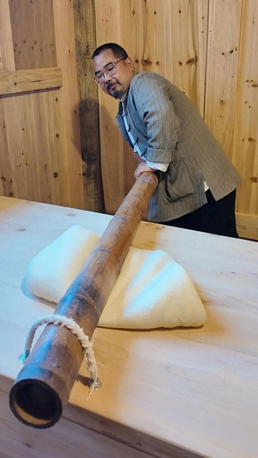 粗獷中見精致的手工揉制、竹杠壓制工藝