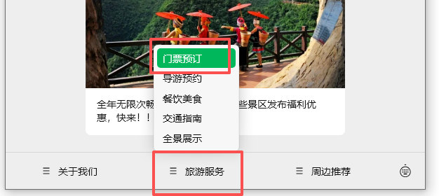 點擊菜單欄“旅游服務”,選擇“門票預訂” 進入購票頁面;
