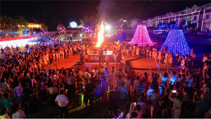 土家篝火表演:每晚在“市井三國”非遺集市上演。