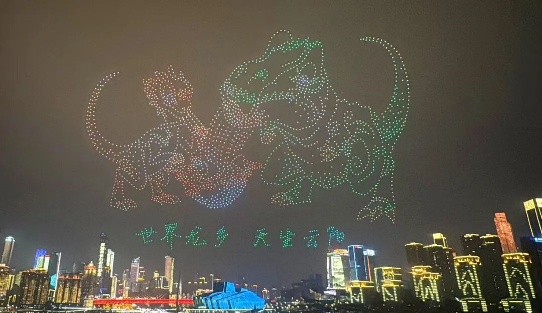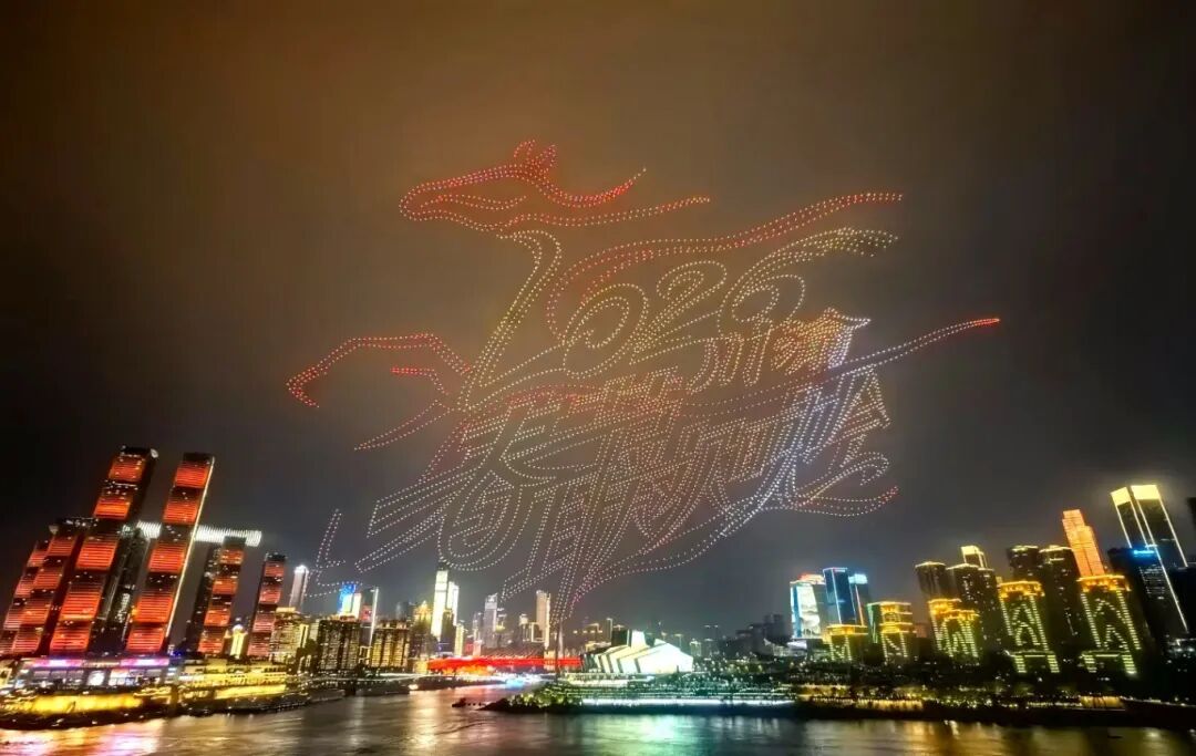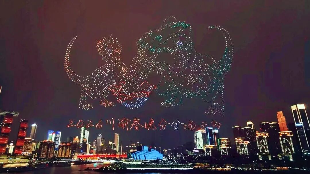 在夜空中勾勒出靈動的2026川渝春晚LOGO