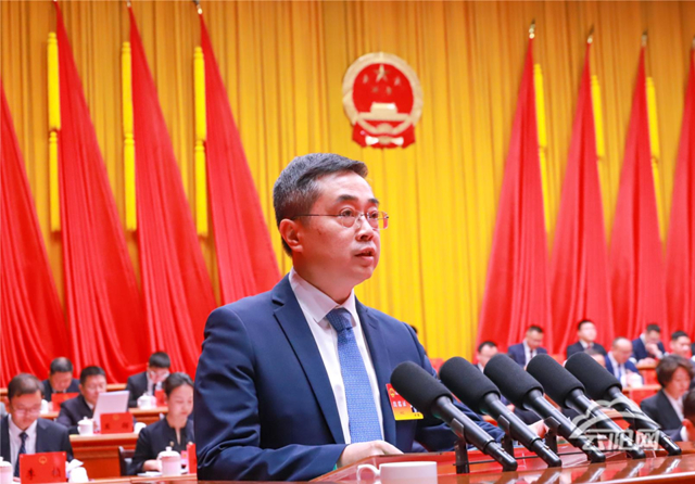 甘露代表縣人民政府向大會作政府工作報告。報告分四個部分:“十四五”時期和2025年工作回顧;“十五五”時期主要目標任務;2026年工作安排;全面提升政府治理現代化水平。