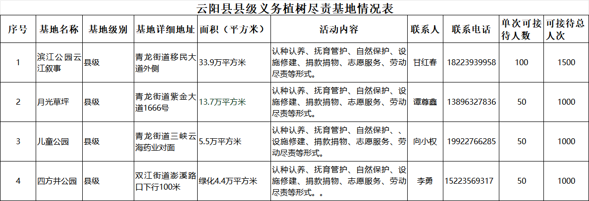 云陽公布了縣級義務植樹盡責基地
