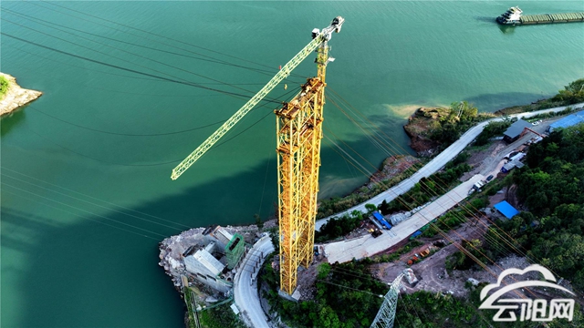 在項目施工現(xiàn)場,工人們正在進(jìn)行纜索安裝作業(yè),塔吊高聳,鋼纜穿梭,大家分工有序,全力沖刺,力爭大橋早日建成通車。截至3月底,項目左右兩岸拱座、索塔完成100%,完成投資約5500萬元,占總投資的65%,目前正有序開展纜索安裝作業(yè)。