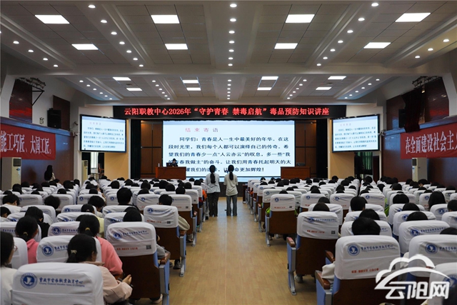 云陽網訊 (記者 譚啟云) 近日,云陽職教中心舉行2026年“守護青春 禁毒啟航”毒品預防知識講座,本次活動旨在進一步增強青少年識毒、防毒、拒毒意識,筑牢校園禁毒防線。