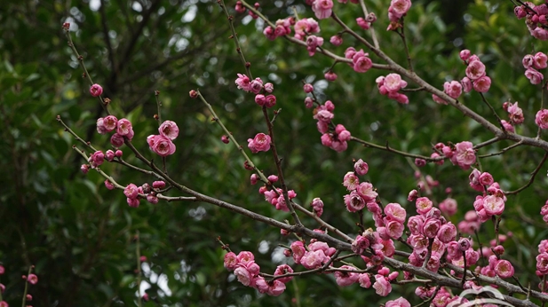 近日,隨著氣溫變化,我縣城區各公園內的紅梅陸續綻放,為寒冷冬日添了一抹艷麗色彩。