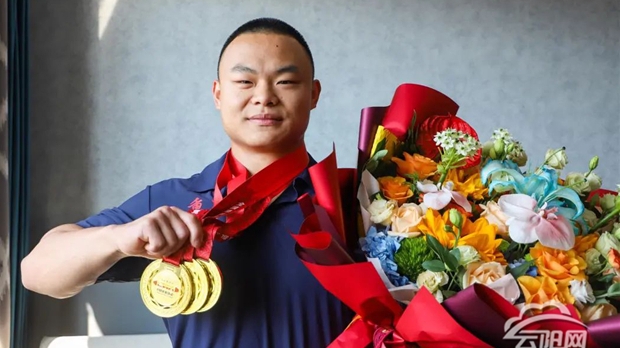 今年7月,安徽滁州。在全國U系列舉重冠軍賽的舉重臺上,18歲的丁彬深吸一口氣,發(fā)力,提拉,上挺!杠鈴穩(wěn)穩(wěn)舉過頭頂。