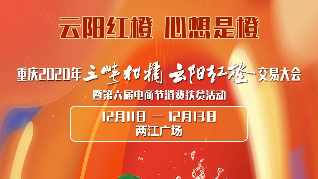 離12月11日即將舉辦的“重慶市2020年三峽柑橘·云陽紅橙交易大會暨第六屆電商節消費扶貧活動”只有4天了……