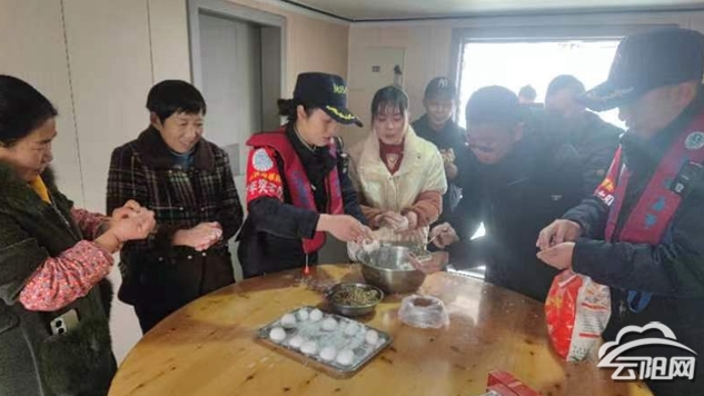2月9日,云陽海事處組織曲堆子停泊區(qū)值班留守船員齊聚“佳鴻919”輪一起包湯圓、貼春聯(lián)、慶新年。