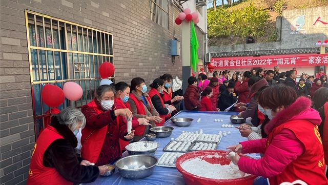 2月15日,雙江街道黃金包社區開展“社區一家親”元宵節活動,社區居民歡聚一堂,共同歡度元宵佳節。