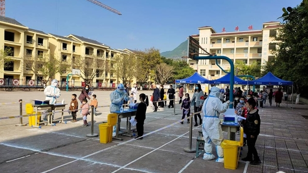 4月3日,人和街道中心衛生院核酸檢測點排起了長隊。