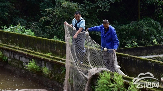 深秋時節(jié),在高陽鎮(zhèn)青樹村的水塘里,云陽縣漁公農(nóng)業(yè)開發(fā)有限公司總經(jīng)理溫定軍和村民正一起熱火朝天地網(wǎng)魚,網(wǎng)收緊后……