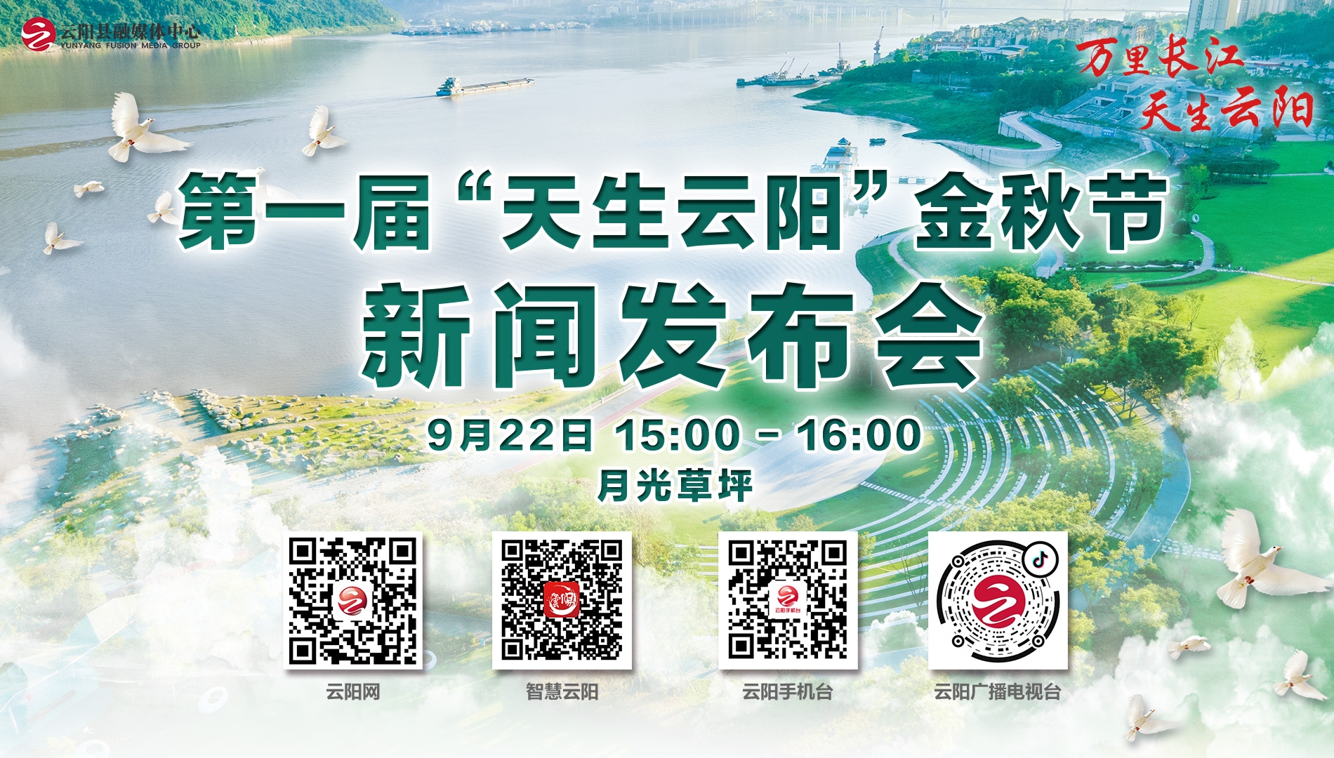 9月22日,云陽在環湖綠道月光草坪舉行新聞發布會,宣布第一屆“天生云陽”金秋節開幕……