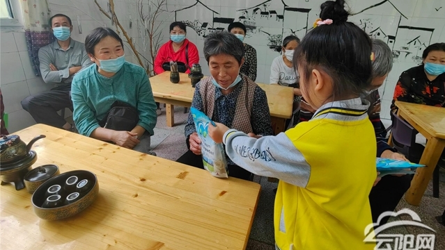 10月13日,大陽小學黨支部書記余定平率領(lǐng)全體黨員和少先隊員志愿者走進敬老院,為10位老人送去溫暖,并開展了慰問演出。