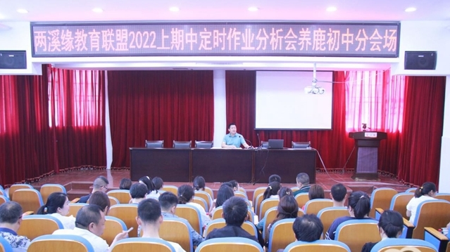 5月7日,沙沱初中、龍池初中、南溪中學(xué)、天景初中、高陽中學(xué)、小江初中、養(yǎng)鹿初中組成的“云陽縣兩溪緣教育聯(lián)盟”2022年上期定時作業(yè)質(zhì)量分析會在養(yǎng)鹿初中如期舉行。