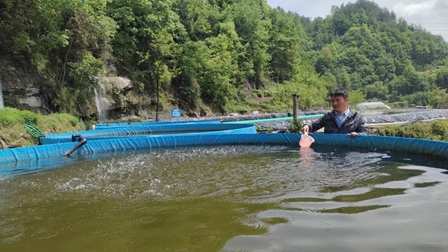 ?4月18日,筆者走進(jìn)云陽縣豐沃水產(chǎn)養(yǎng)殖有限公司基地,潺潺的溪流橫穿基地兩岸,水質(zhì)清澈見底。