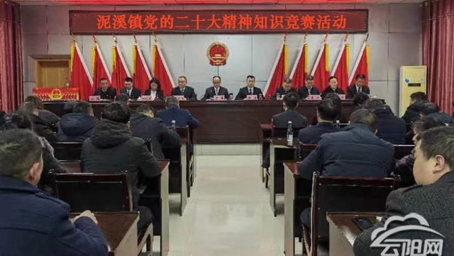 近日,泥溪鎮舉辦黨的二十大精神知識競賽活動,用小問題賽出高水平,展示過硬理論和扎實積累。全體鎮村干部參會,12名青年干部代表參賽。