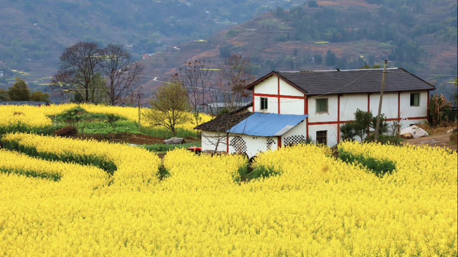 春暖花開棲霞鎮(zhèn)油菜花正迎來花期黃萼裳裳鋪天蓋地漫過山巒流過平地,穿過村莊……