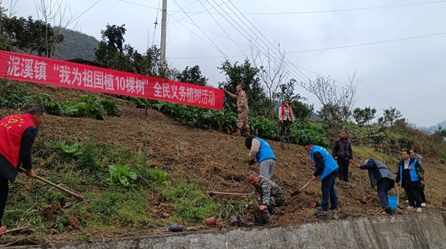 3月14日,泥溪鎮組織開展了“我為祖國植10棵樹”全民義務植樹活動。
