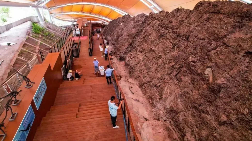 9月28日第四屆“天生云陽”金秋節云陽地質公園恐龍化石遺址館開館活動舉行世界上單體最大的侏羅紀恐龍化石墻向公眾亮相……