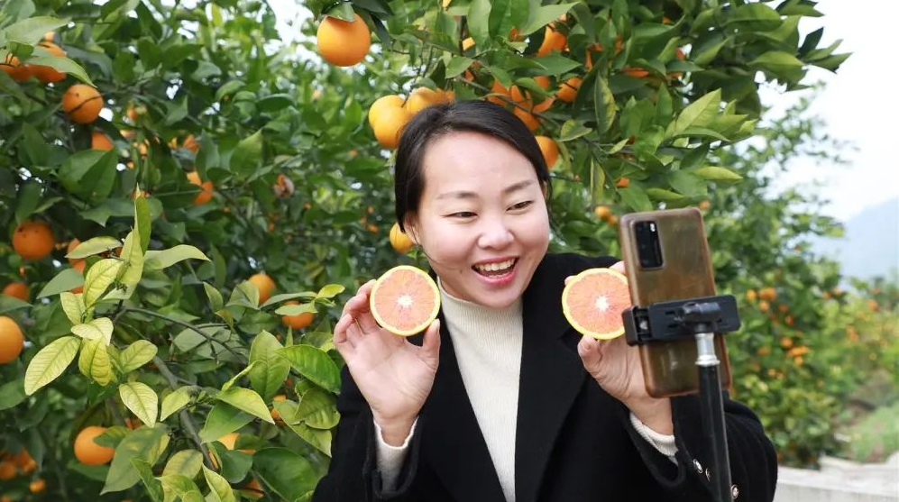 “家人們,這是我們云陽的紅橙,果大飽滿、汁水充足,喜歡吃的家人們可以點擊下面的小黃車下單!”初次見到柳井蘭,她正穿梭在柑橘地里,向觀看直播的網(wǎng)友介紹云陽紅橙的品質(zhì)、口感。