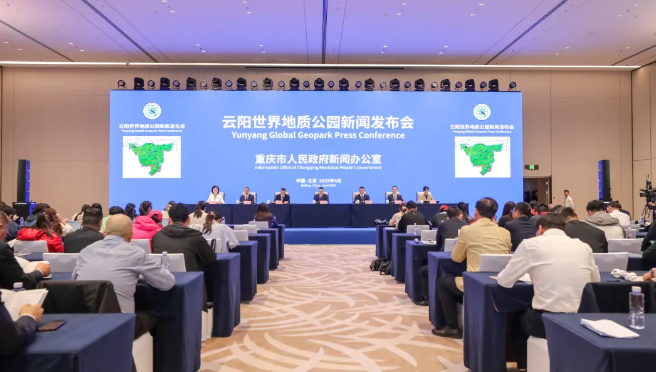 4月18日下午云陽世界地質公園新聞發布會在京舉行來自全國100余家文旅企業、地質專家及媒體代表共同見證重慶首個世界地質公園的誕生