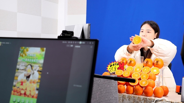 “家人們,看這果子多新鮮!我現場給大家剝一個嘗嘗,這果肉,那叫一個鮮嫩多汁、香甜可口……”12月19日,在盤龍街道柑橘果園里,抖音平臺粉絲超300萬的網紅主播“小胖墩”正熱情洋溢地向直播間粉絲介紹著手里的柑橘,一場別開生面的直播助農活動正如火如荼地進行著。