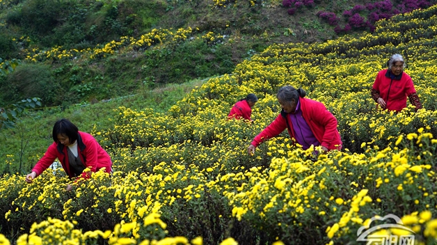 近日,三峽渝菊千畝菊花種植基地陸續進入收獲期,花農們正趁著晴好天氣,忙碌地采摘菊花,田間地頭一派繁忙景象。