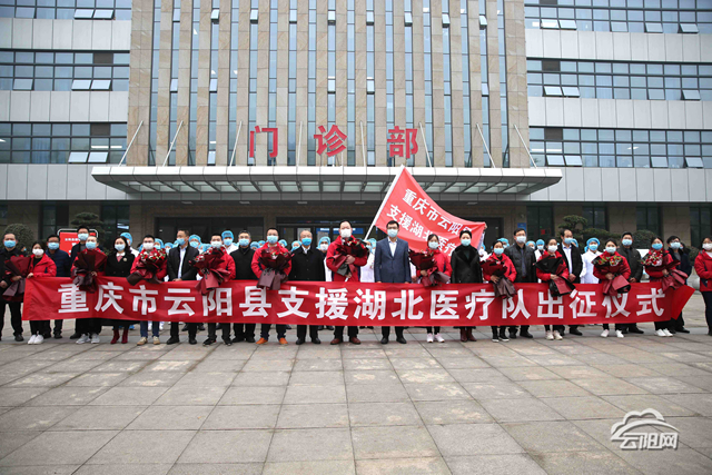 云陽(yáng)網(wǎng)訊(記者 鄧?yán)?趙曉龍)2月25日上午,云陽(yáng)首支支援湖北醫(yī)療隊(duì)出征,全力支援湖北省孝感市新冠肺炎疫情救治工作。縣委書(shū)記張學(xué)鋒,縣委副書(shū)記、縣長(zhǎng)覃昌德等為醫(yī)療隊(duì)送行。